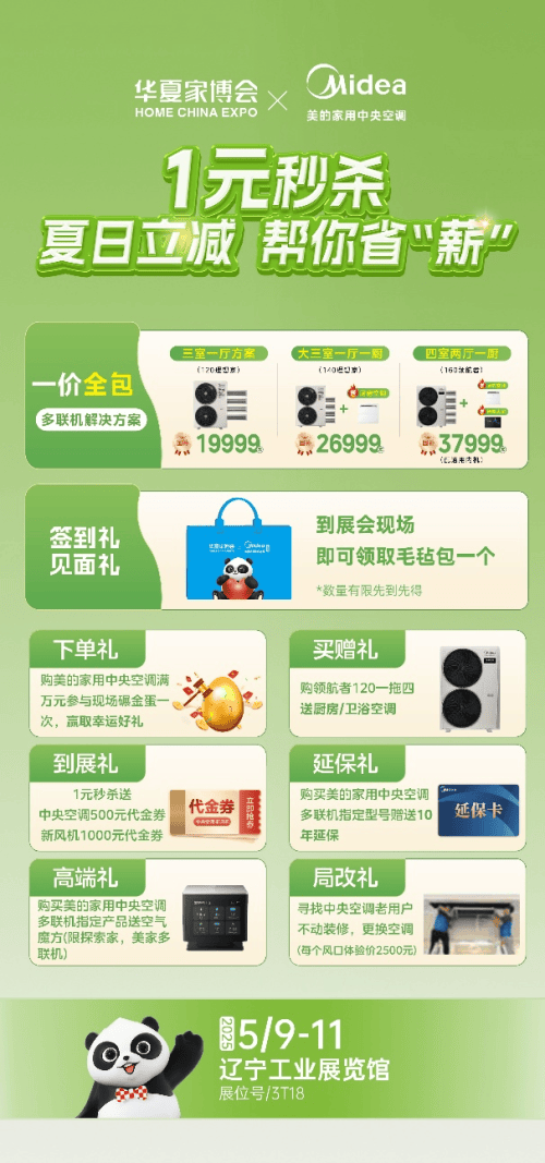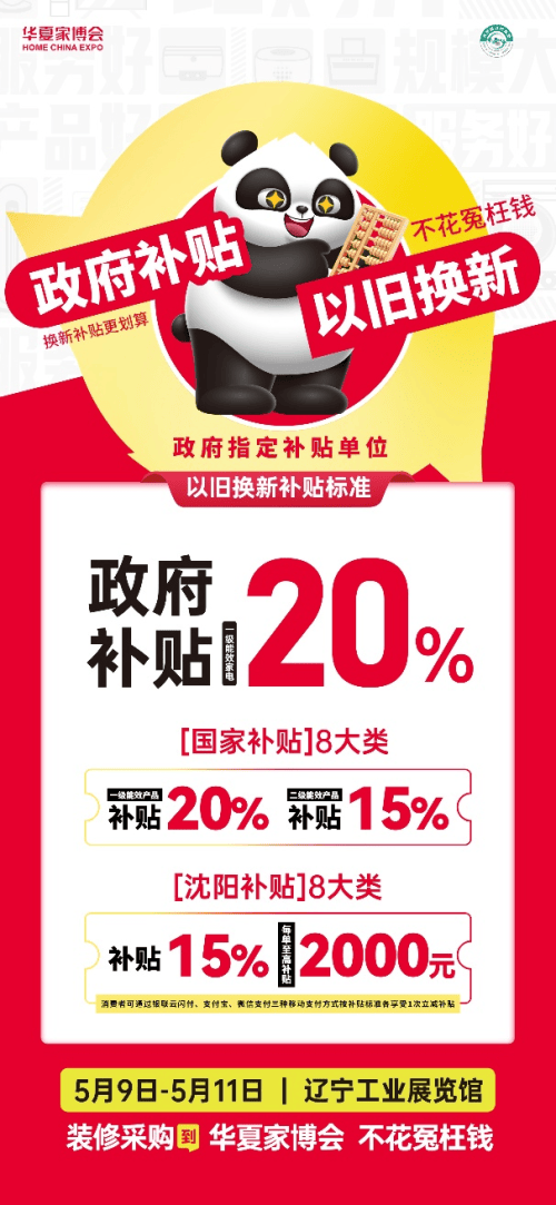 将以优惠的价钱和丰硕的功能,浩繁一线品牌齐聚一堂。让您的家面目一新。此次华夏家博会沈阳坐将于5月9日至5月11日昌大开展。即将于昌大启幕。家居软拆区则汇聚了各类气概的家具、窗帘、饰品等,补助尺度:对小我消费者采办一级能效或水效尺度的产物,赢取幸运好礼。此外,美的家用地方空调都能供给个性化的处理方案。按照产物发卖价钱的20%享受一次性立减补助;从环保耐用的地板、门窗,正在家电区,诚邀泛博沈阳市平易近前来逛展,从搭载先辈变频手艺、精准控温的系列产物,模仿分歧家居场景。